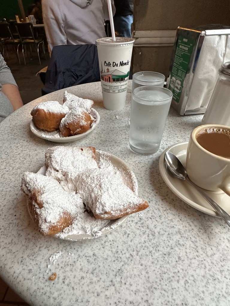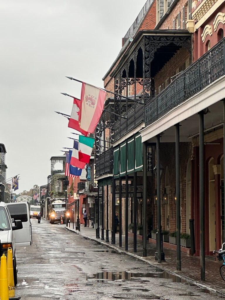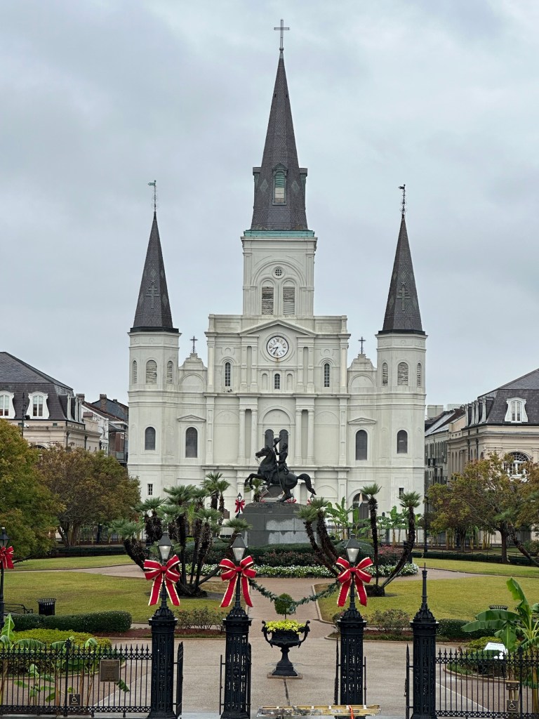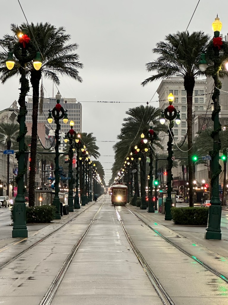 A pre-holiday getaway in early November to the Big Easy, New Orleans, where the city was beginning to decorate for Christmas. The weather was a bit damp and chilly, but we had a great time. First things first, we stopped at Cafe du Monde for coffee and beignets. A stroll by some celebrity homes in the Garden District- where we were the only ones on the walking tour. A quick peek at Commander’s Palace, although we could not get reservations. So we went and ate at Emeril’s instead.
